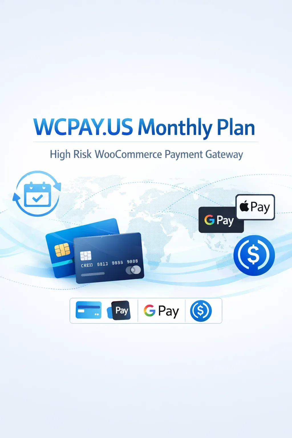 WCPAY.US is a high risk WooCommerce payment gateway that enables merchants to accept international card payments,